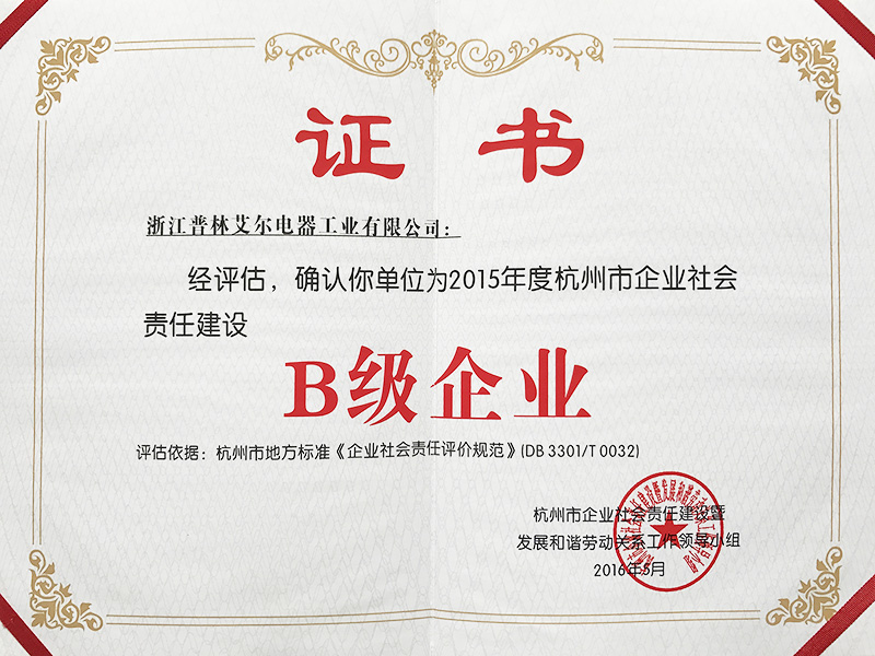 2015年杭州市企業(yè)社會責任建設B級企業(yè)