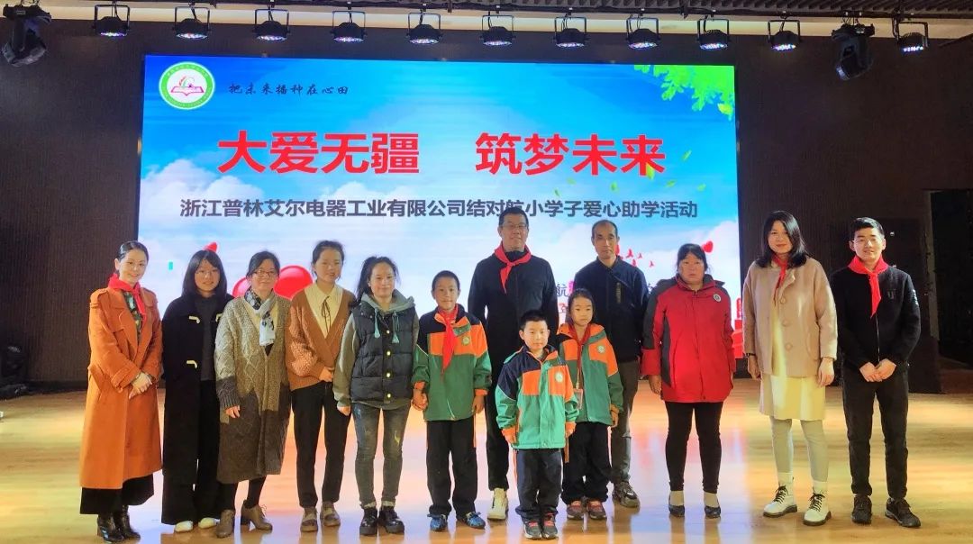 “大愛(ài)無(wú)疆 筑夢(mèng)未來(lái)——浙江普林艾爾電器工業(yè)有限公司結(jié)對(duì)航小學(xué)子愛(ài)心助學(xué)活動(dòng)”在航頭中心小學(xué)舉行。浙江普林艾爾電器工業(yè)有限公司董事長(zhǎng)葉海林親臨現(xiàn)場(chǎng)進(jìn)行愛(ài)心捐助,航頭鎮(zhèn)副鎮(zhèn)長(zhǎng)洪意鈞,航頭中心小學(xué)校長(zhǎng)邵靜參加了本次活動(dòng)。