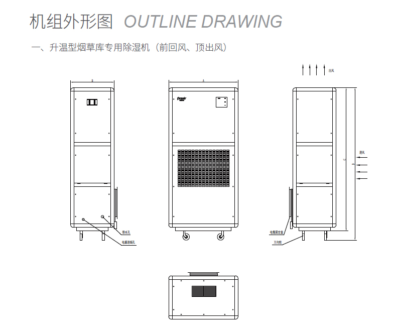 注: 1、除濕量標定工況:進風干球溫度27℃,相對濕度60%; 2、噪聲測定:按規定接上風管后,在距機組正面2米處測得; 3、帶“B”的機組為低溫型機組,適用溫度范圍5~32℃。 |