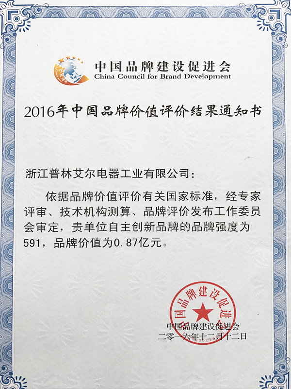 2016年中國品牌價(jià)值評(píng)價(jià)結(jié)果通知書